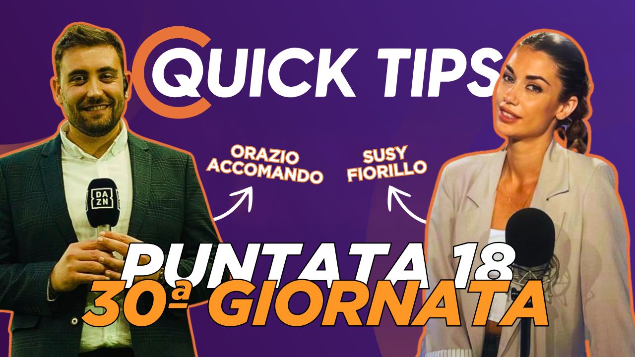 Al termine della quarta, e ultima, sosta delle nazionali di questa stagione torna finalmente la Serie A! Il campionato giungerà alla fine tutto d’un fiato, di domenica in domenica, fino a decretare la squadra vincitrice del tricolore. È tornato anche il momento di schierare la formazione al Fantacalcio e per aiutare tutti i fantallenatori, come sempre, si ripete l’appuntamento settimanale con Quick Tips, la trasmissione targata Consigli Fantacalcio Official che va onda in diretta ogni giovedì dalle ore 11:00 su Instagram e dalle 11:30 su YouTube . In conduzione la giornalista Susy Fiorillo e Coach Orazio Accomando.